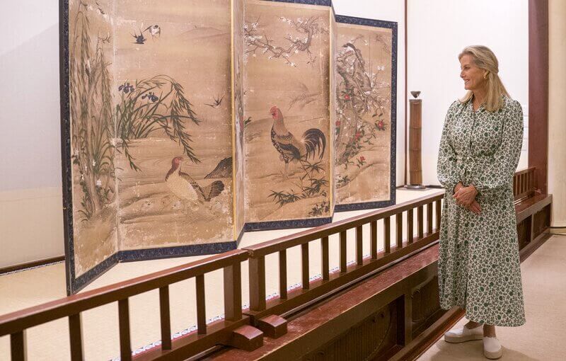 その後、エディンバラ公爵夫人は港区にある根津美術館を訪問しました。根津美術館は、根津嘉一郎(1860〜1940)が収集した前近代日本および東アジア美術の保存・展示を目的として設立され、国宝7点を含む約7,600点の作品を所蔵しています。