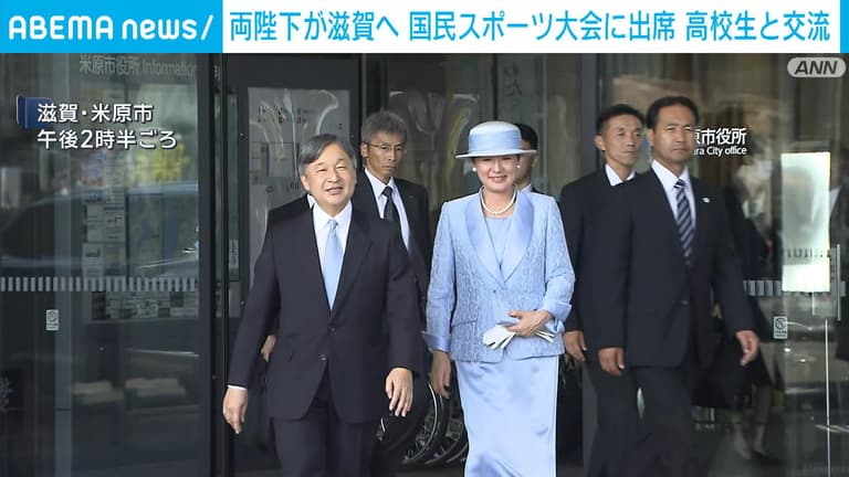 昼過ぎ、両陛下は米原駅に到着し、出迎えの県知事らの挨拶を受けた後、地元住民などの歓迎に笑顔で手を振りながら、開会式会場へと向かわれました。