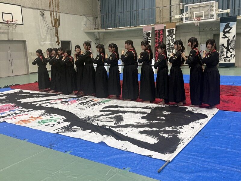 県立伊吹高校書道部「墨人」の部員=米原市朝日で、2025年10月8日午後4時15分、菊池真由撮影