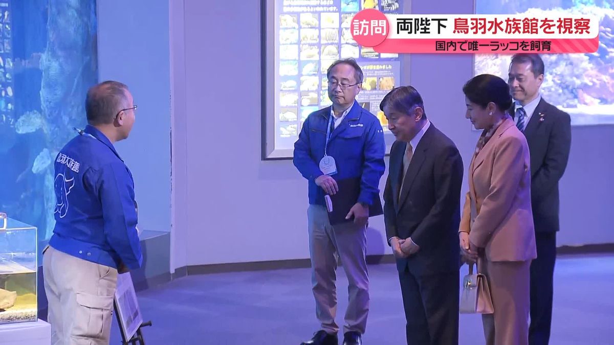 三重県を訪問している天皇皇后両陛下は、水族館で絶滅危惧種のラッコがジャンプする様子をご覧になりました。