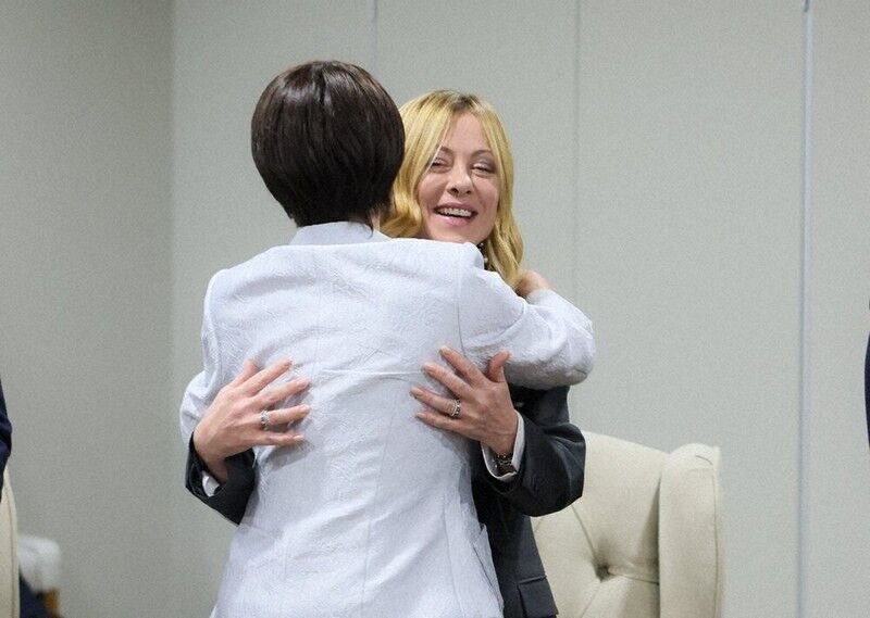 2025年11月に開催された主要20カ国・地域首脳会議(G20サミット)で高市早苗首相とイタリアのメローニ首相が抱き合う写真=高市氏のX(ツイッター)アカウントから