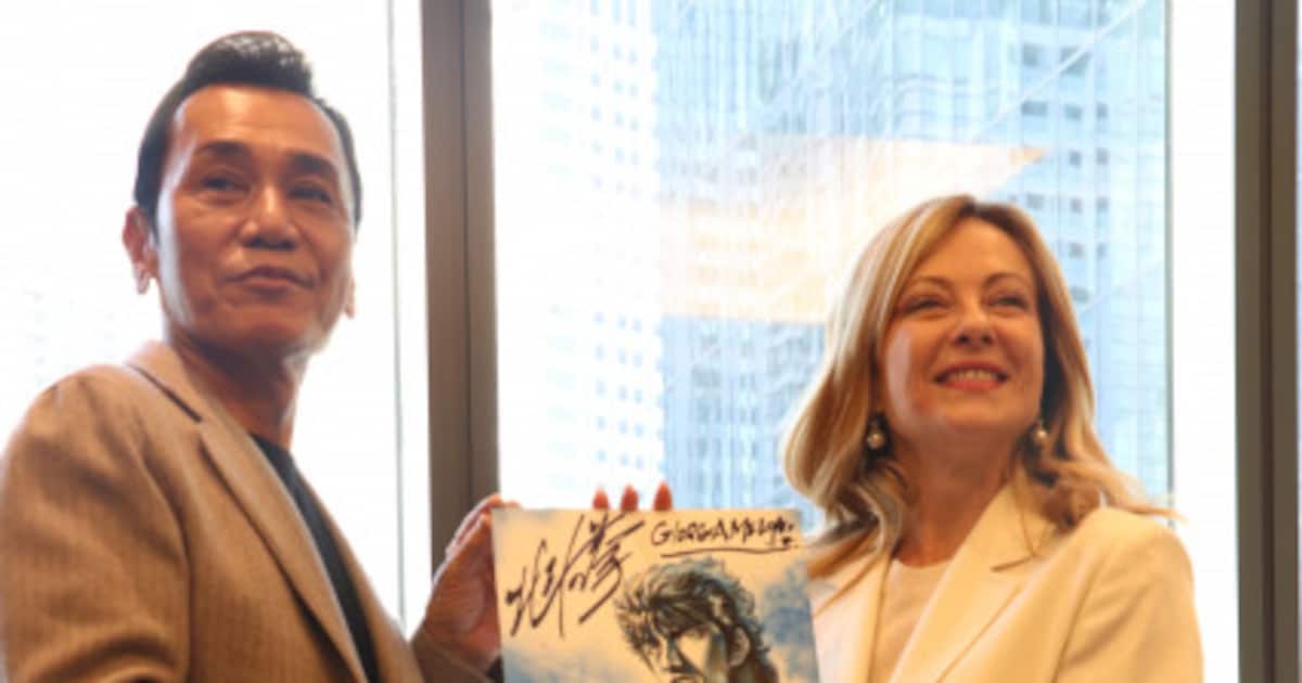 イタリアのメローニ首相、大ファンの『北斗の拳』原哲夫と面会で握手 版画に笑顔