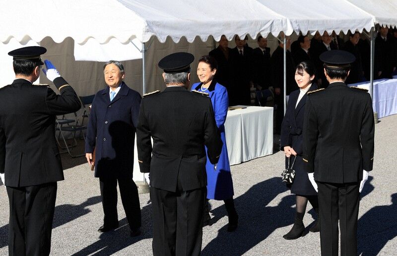 天皇、皇后両陛下と長女愛子さまは23日、皇居・東御苑で行われた皇宮警察創立140周年記念年頭視閲式に出席された。