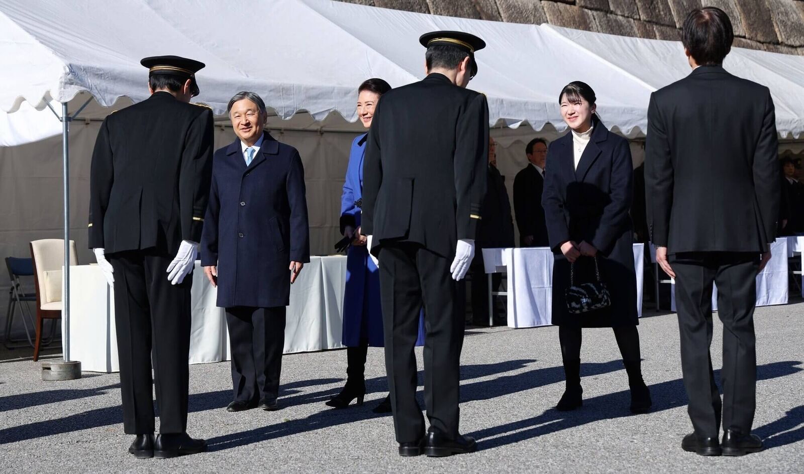 皇宮警察年頭視閲式の会場に到着された天皇、皇后両陛下と長女の敬宮愛子さま=23日午前9時59分、皇居・東御苑(代表撮影)
