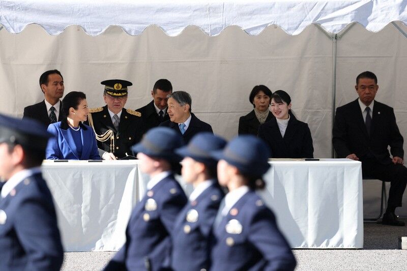 天皇、皇后両陛下と長女の敬宮(としのみや)愛子さまは23日、皇居・東御苑で、皇室の護衛や警備にあたる皇宮警察の年頭視閲式に臨席された。