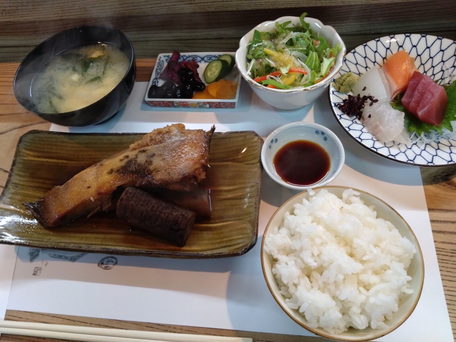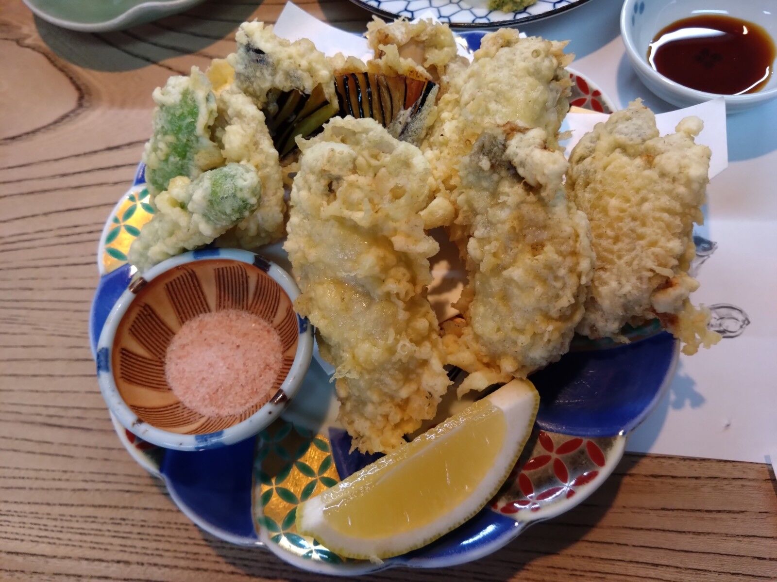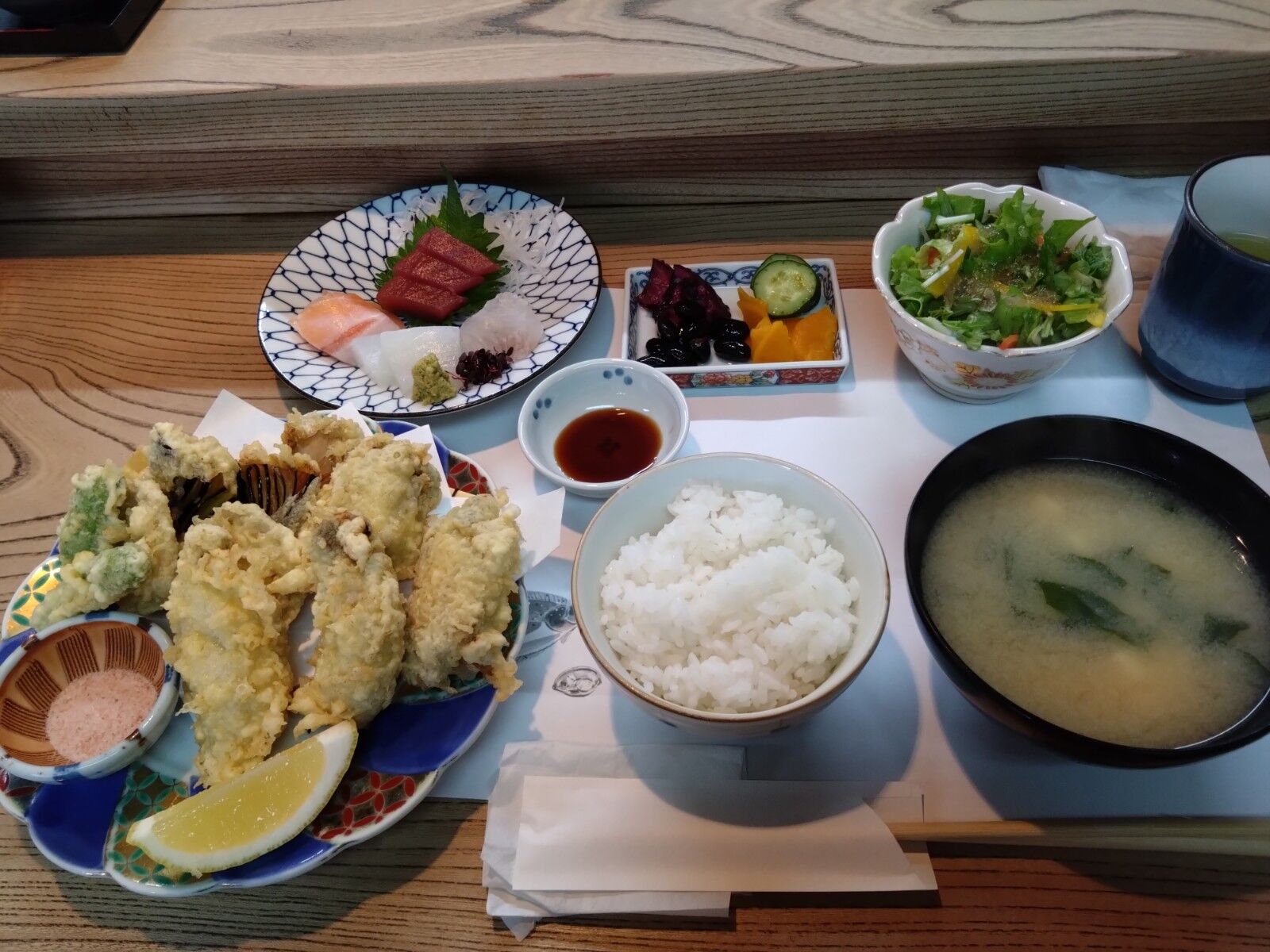 私は、 牡蠣と野菜の天ぷら定食1300円 プラス刺身400円を付けて