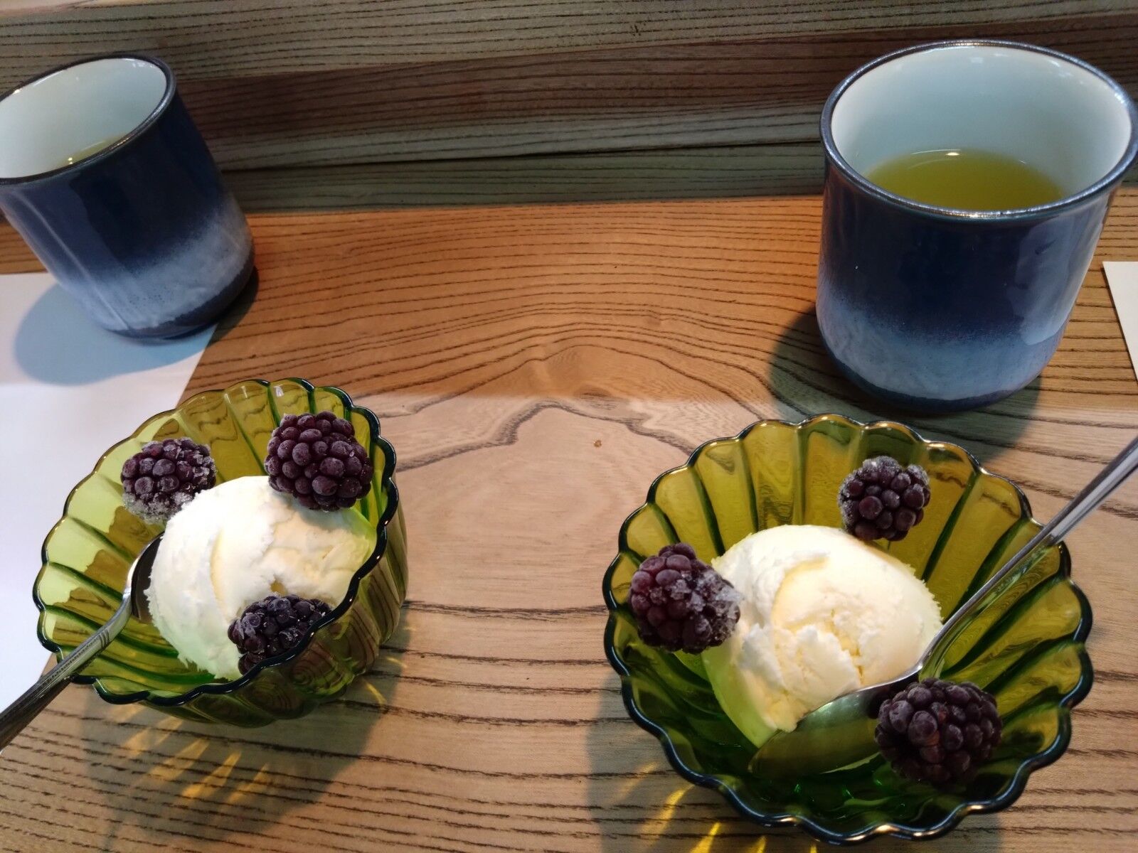 アイスクリームに添えてあるベリーはこのお店の庭に植えてあるベリーを摘んで冷凍したものなんです。
