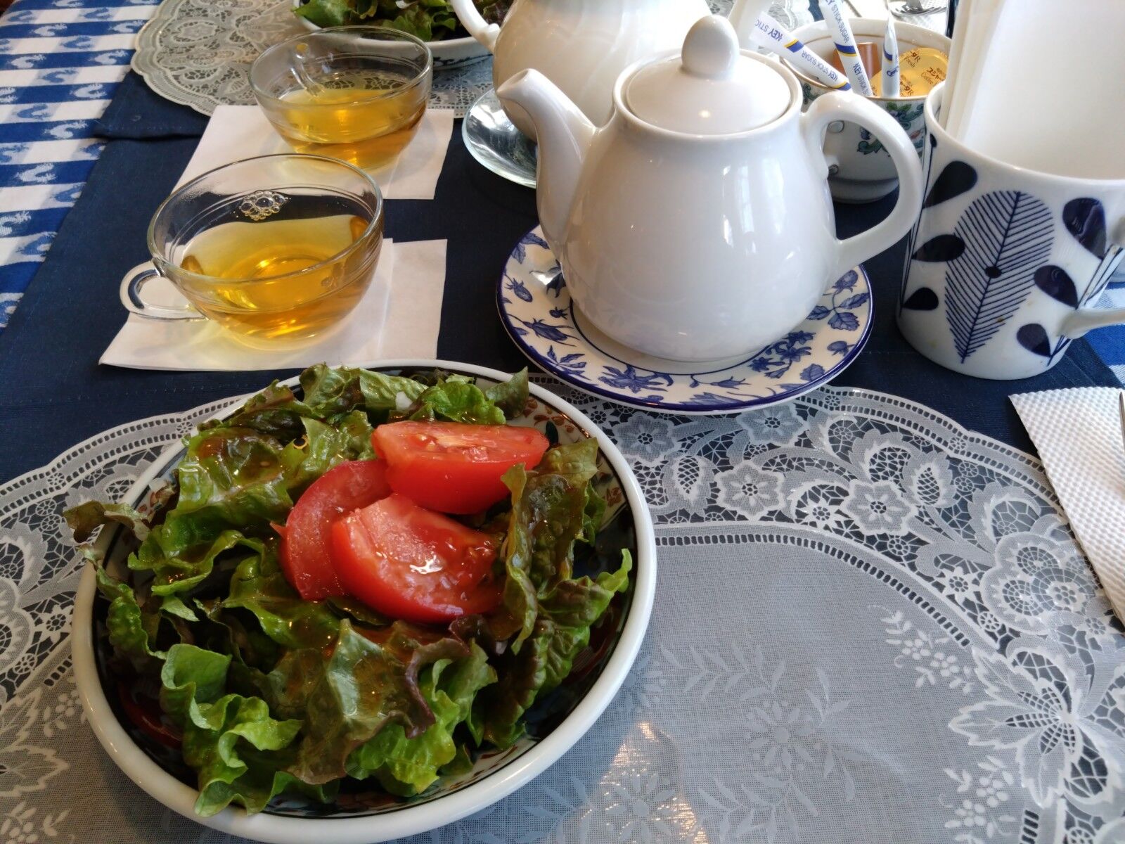席に付くとまずサラダ、新鮮なサラダとトマト。