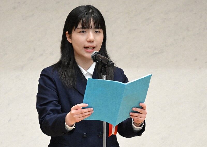表彰式では受賞者を代表し、高等学校の部で内閣総理大臣賞を受賞した群馬県立前橋女子高2年の荻原明音さんが感想文を朗読した。