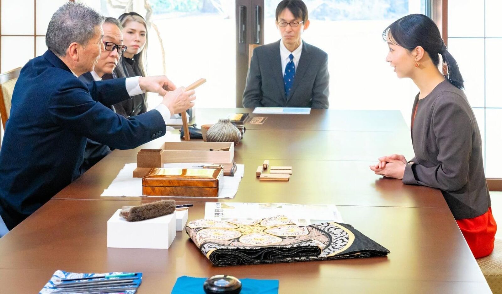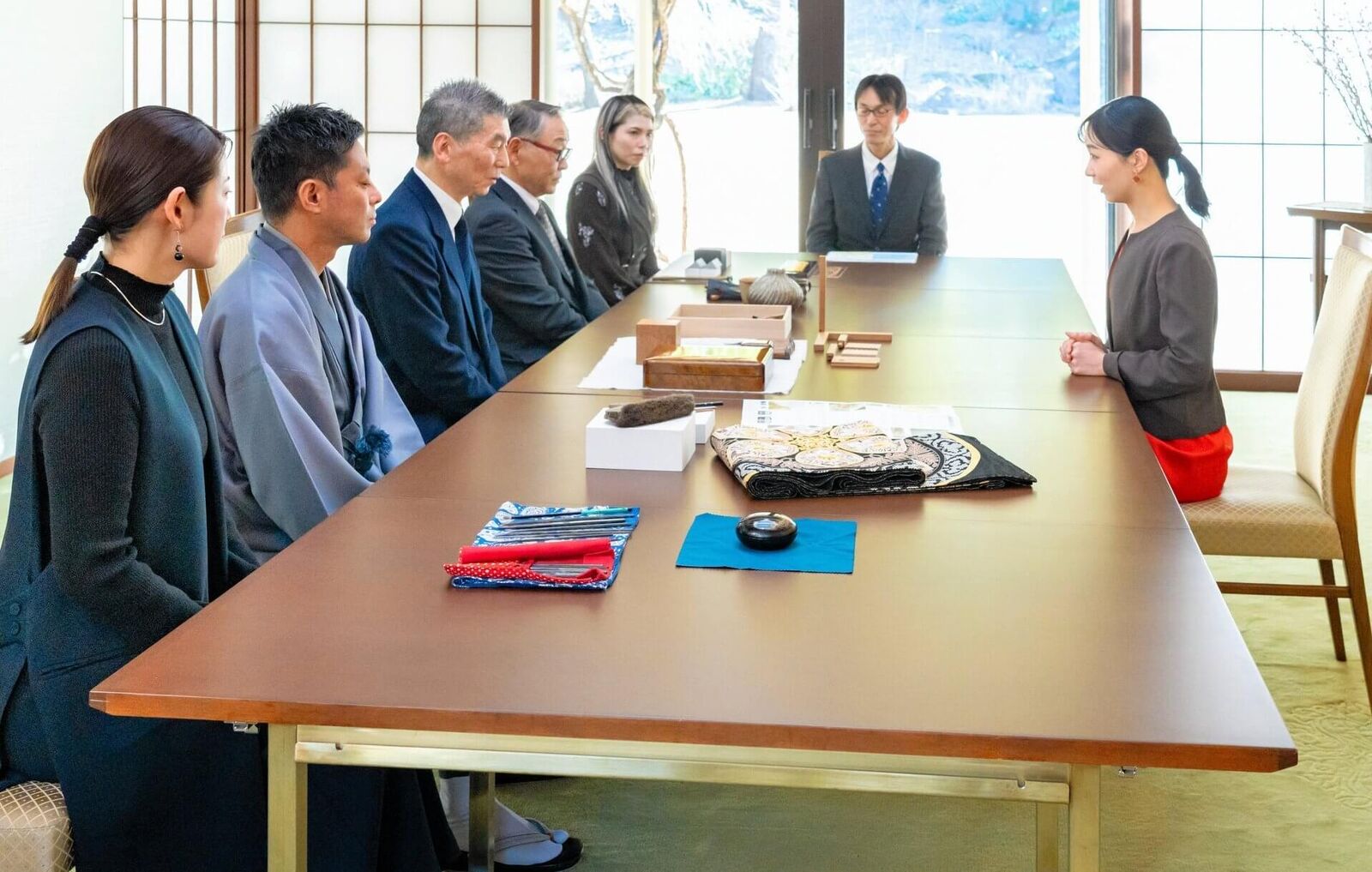 2026年2月13日、プリンセス佳子は東京・元赤坂の赤坂御用地内にある秋篠宮邸にて、6名の伝統工芸士とご会見されました。出席者には、備前焼、秋田県の川連漆器、愛知県の尾張仏具の専門家が含まれていました。
