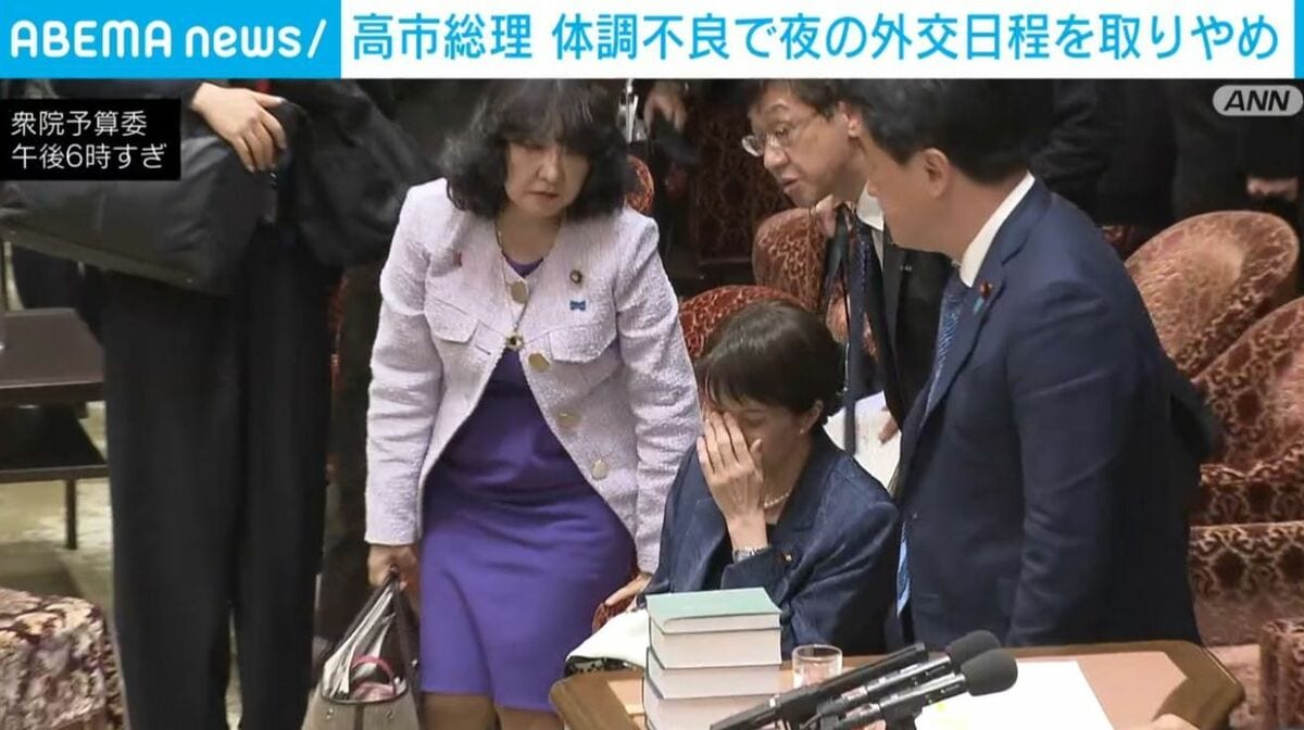 そういう中、とうとう高市総理が体調を崩してしまった。